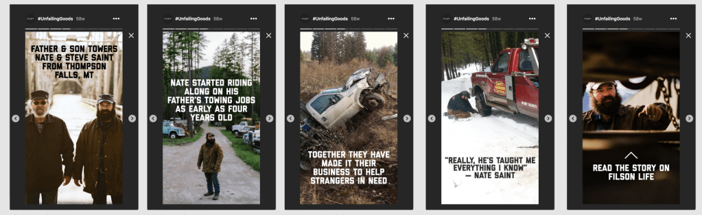 Social Media Filson Instagram Stories for products, events, recipes and outdoor how-tos. Share this: Share on X (Opens in new window) X Share on Facebook (Opens in new window) Facebook Like Loading...